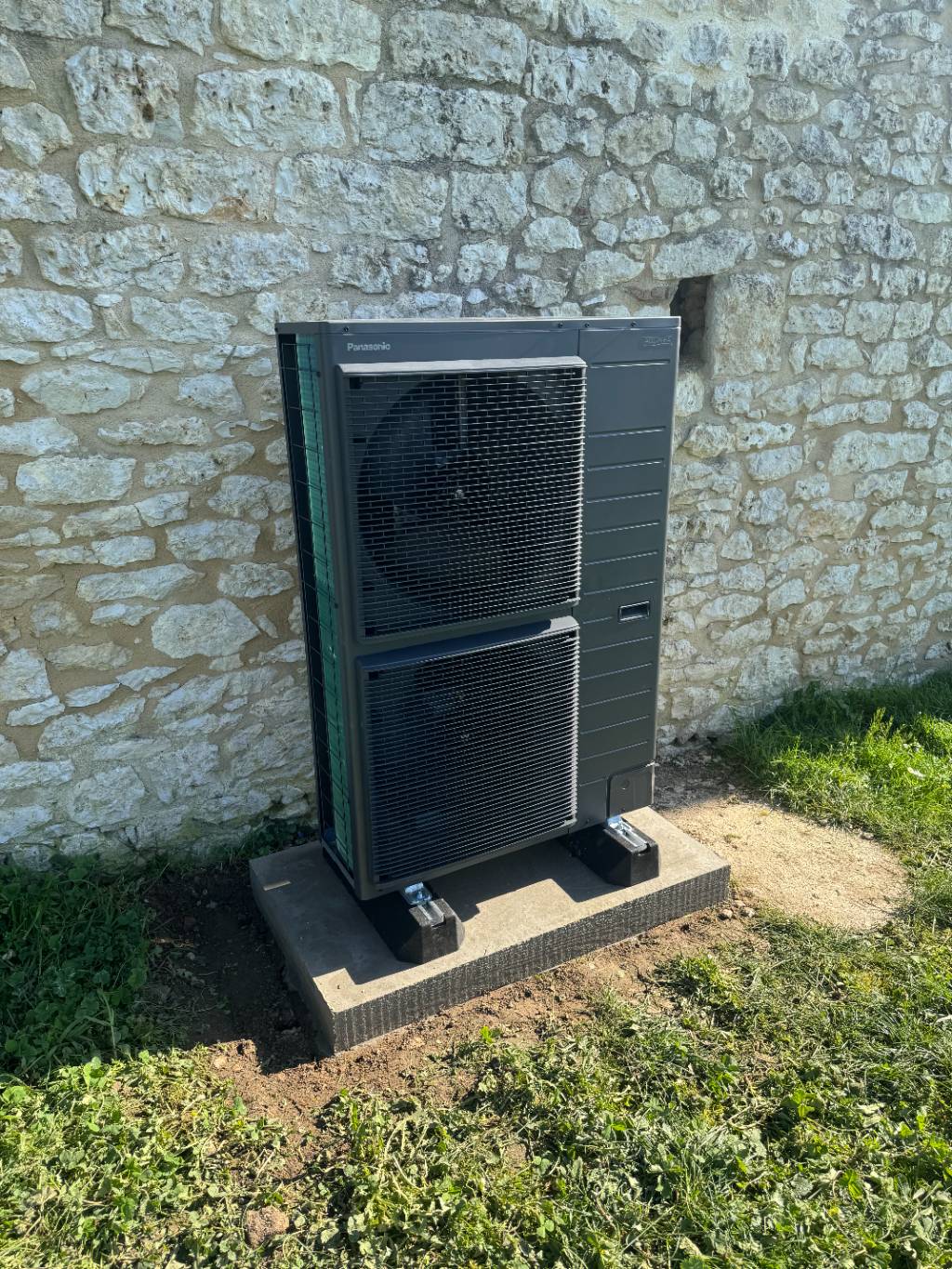 Nous avons réalisé l'installation d'une pompe à chaleur de type air/eau et de la marque PANASONIC sur la commune de Mauroux.