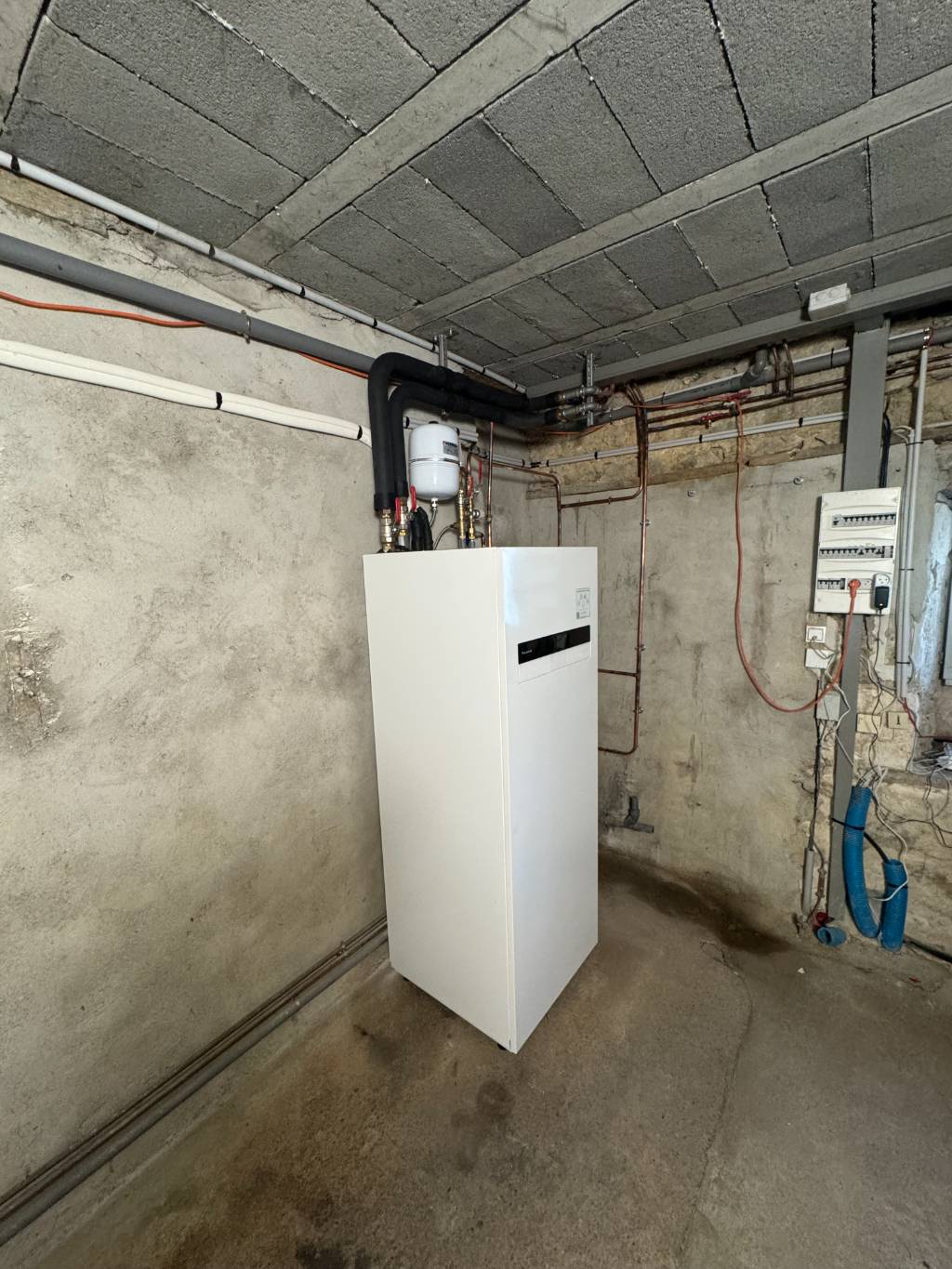 Cette pompe à chaleur est d'une puissance de 12 kw et est équipé d'un ballon de 185 litres afin d'assurer la production d'eau chaude.