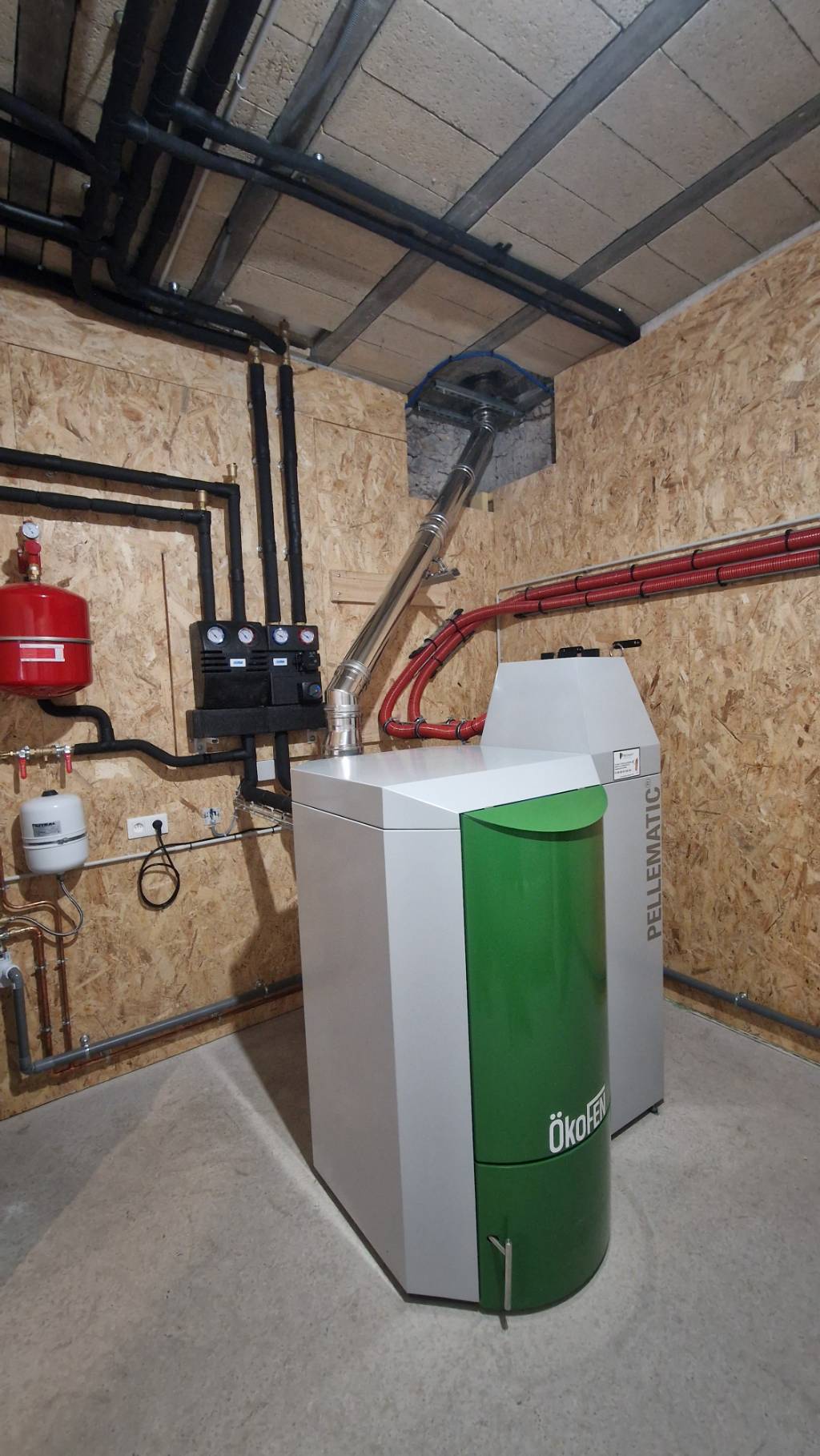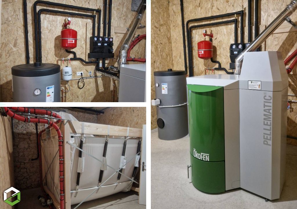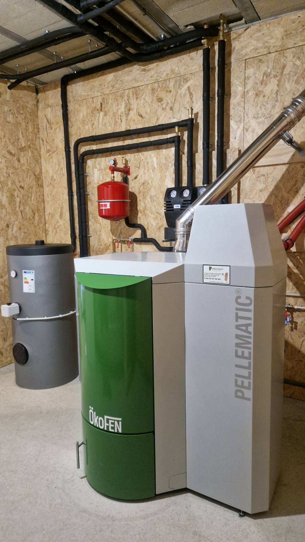Nous avons réalisé l'installation d'une chaudière à granulés de bois de la marque Okofen sur la commune des Junies.